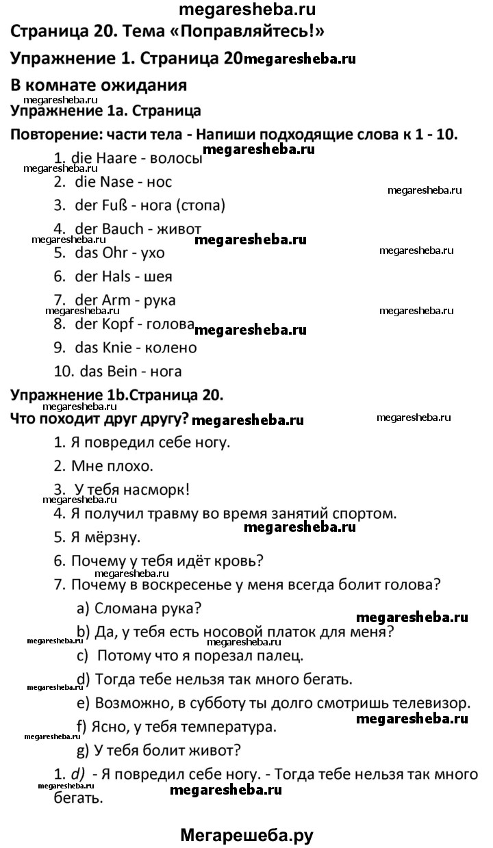 Подробный решебник (ГДЗ) по Немецкому языку за 9 (девятый) класс рабочая тетрадь Horizonte - готовый ответ страница - 20. Авторы учебника: Аверин, Джин, Роман, Михалак. Издательство: Просвещение 2016.
