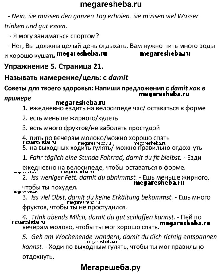 Подробный решебник (ГДЗ) по Немецкому языку за 9 (девятый) класс рабочая тетрадь Horizonte - готовый ответ страница - 21. Авторы учебника: Аверин, Джин, Роман, Михалак. Издательство: Просвещение 2016.