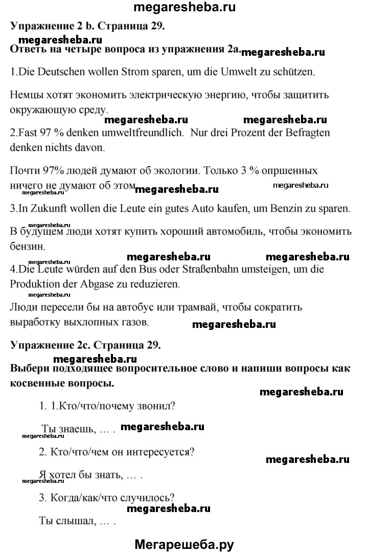 Подробный решебник (ГДЗ) по Немецкому языку за 9 (девятый) класс рабочая тетрадь Horizonte - готовый ответ страница - 29. Авторы учебника: Аверин, Джин, Роман, Михалак. Издательство: Просвещение 2016.
