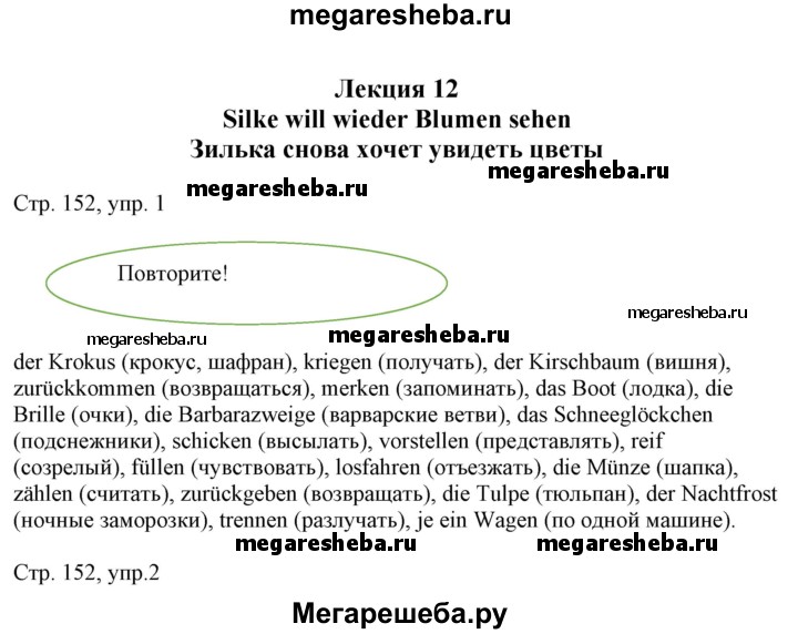 Подробный решебник (ГДЗ) по Немецкому языку за 6 (шестой) класс Alles Klar! - готовый ответ страница - 152. Авторы учебника: Радченко, Хебелер. Издательство: Дрофа 2014.
