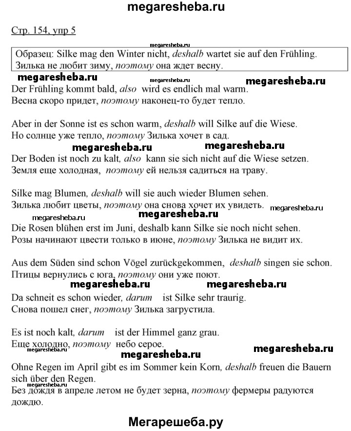 Подробный решебник (ГДЗ) по Немецкому языку за 6 (шестой) класс Alles Klar! - готовый ответ страница - 154. Авторы учебника: Радченко, Хебелер. Издательство: Дрофа 2014.