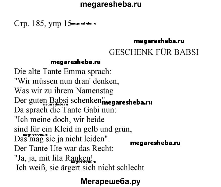 Подробный решебник (ГДЗ) по Немецкому языку за 6 (шестой) класс Alles Klar! - готовый ответ страница - 185. Авторы учебника: Радченко, Хебелер. Издательство: Дрофа 2014.