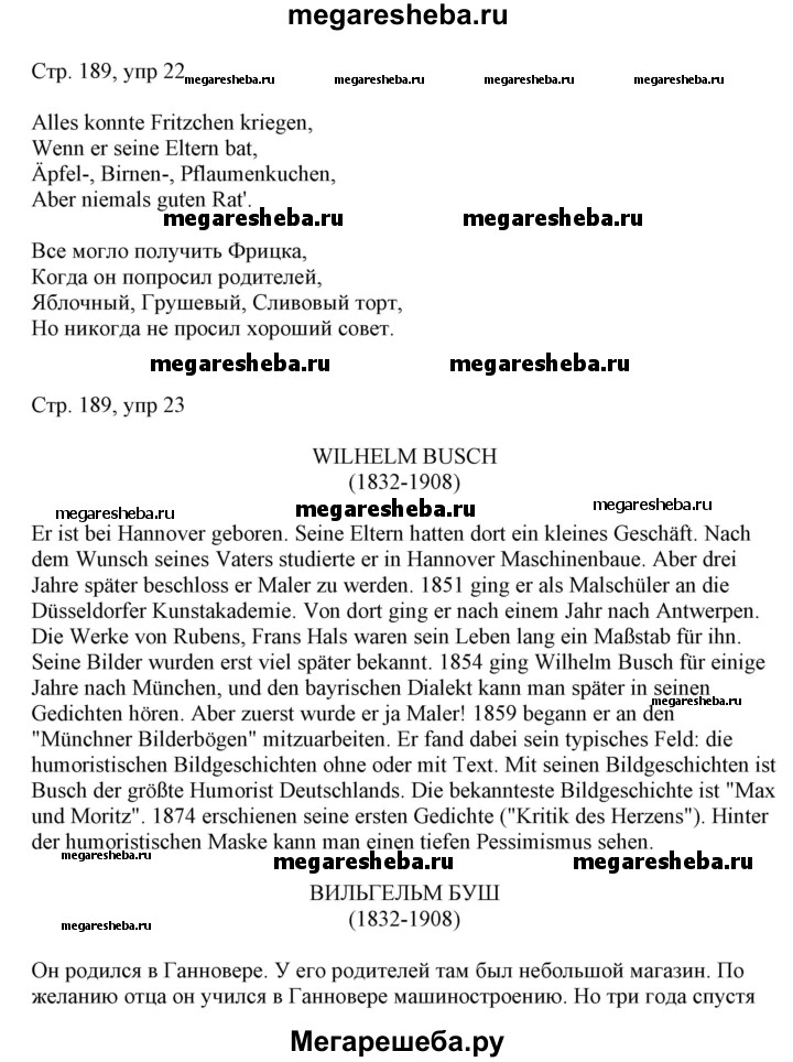 Подробный решебник (ГДЗ) по Немецкому языку за 6 (шестой) класс Alles Klar! - готовый ответ страница - 189. Авторы учебника: Радченко, Хебелер. Издательство: Дрофа 2014.