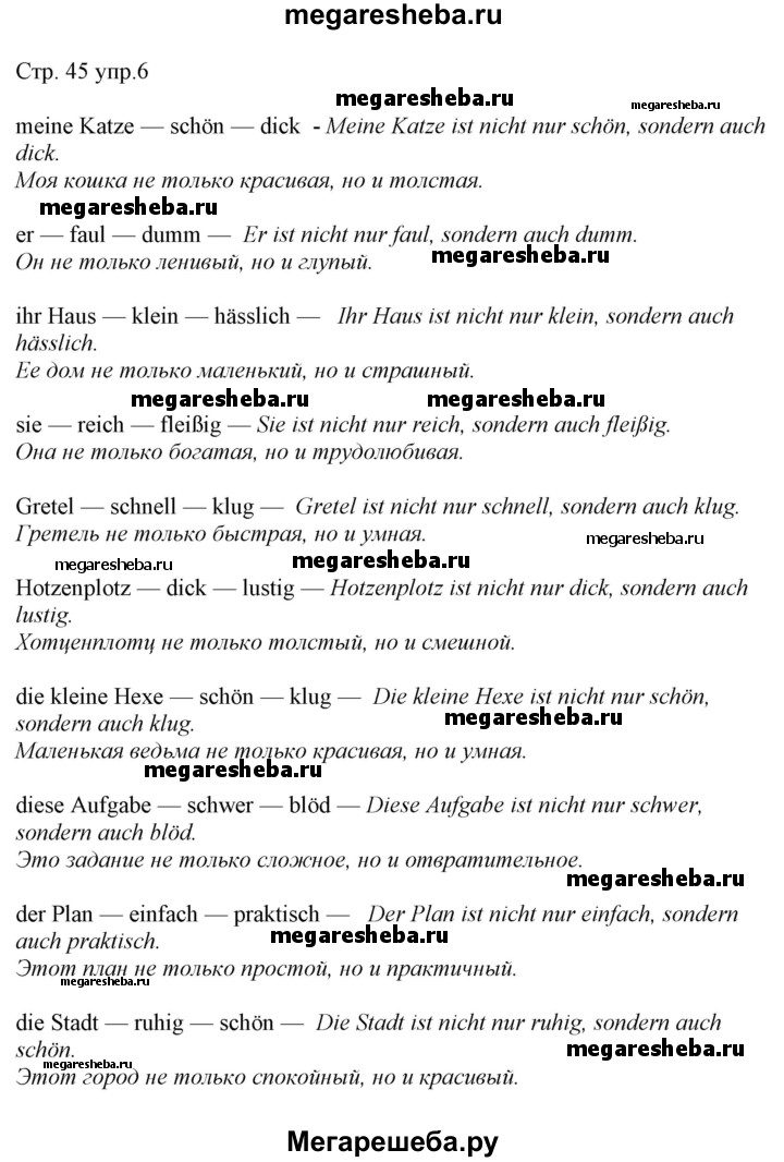 Подробный решебник (ГДЗ) по Немецкому языку за 6 (шестой) класс рабочая тетрадь Alles Klar! - готовый ответ тетрадь №2. страница - 45. Авторы учебника: Радченко, Хебелер. Издательство: Дрофа 2015.