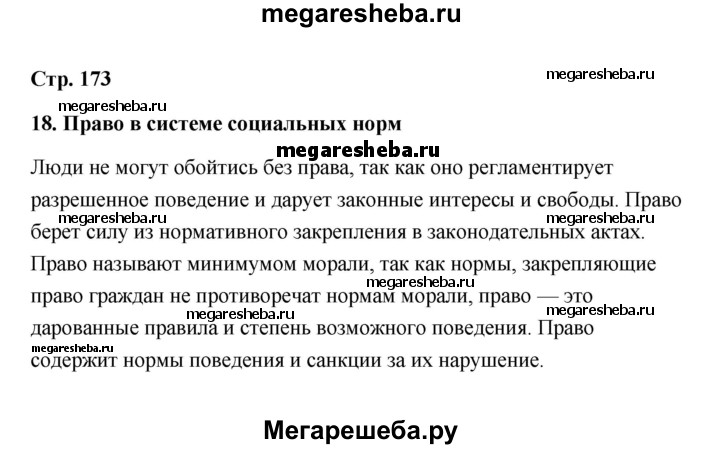 Подробный решебник (ГДЗ) по Обществознанию за 10 (десятый) класс - готовый ответ страница - 173. Авторы учебника: Боголюбов, Лазебникова, Матвеев, Половникова, Иванова, Базовый уровень. Издательство: Просвещение 2021-2023.
