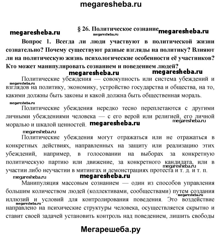 Подробный решебник (ГДЗ) по Обществознанию за 11 (одиннадцатый) класс - готовый ответ Параграф - §26. Авторы учебника: Боголюбов, Лазебникова, Литвинова, Базовый уровень. Издательство: Просвещение 2016.