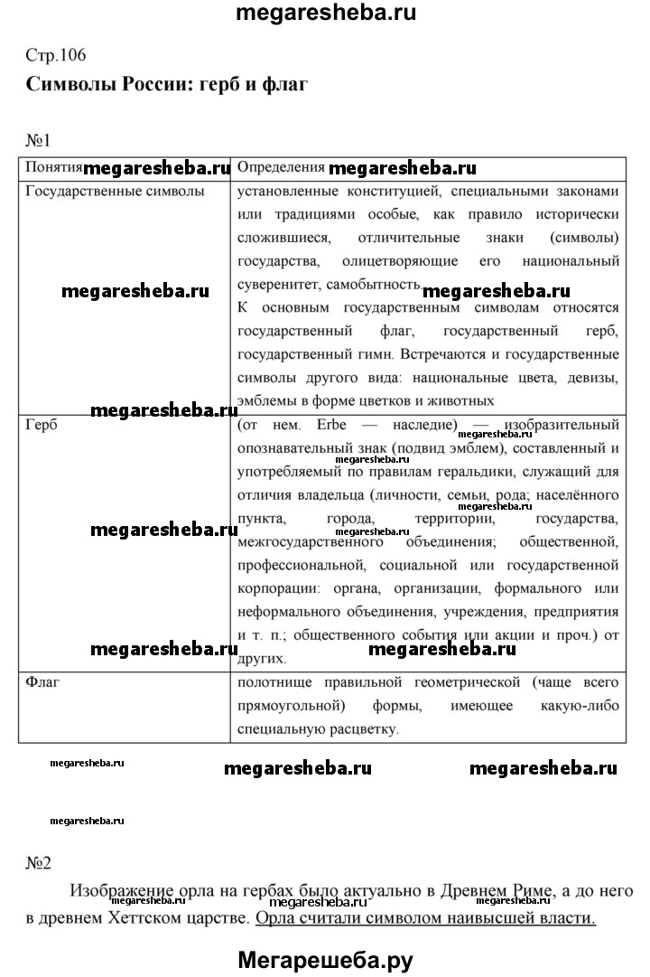 Подробный решебник (ГДЗ) по Обществознанию за 5 (пятый) класс рабочая тетрадь - готовый ответ страница - 106. Авторы учебника: Болотина, Мишина. Издательство: Дрофа 2016.