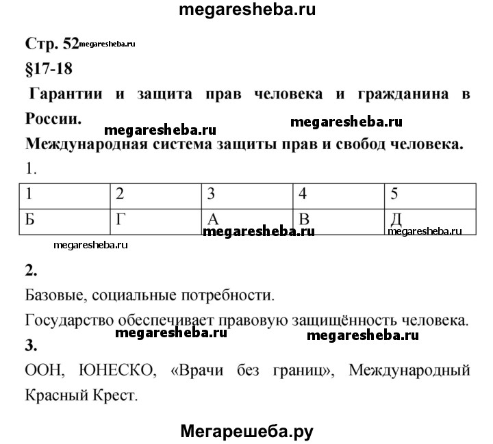 Подробный решебник (ГДЗ) по Обществознанию за 8 (восьмой) класс рабочая тетрадь - готовый ответ страница - 52. Авторы учебника: Соболева, Воронцов. Издательство: Вентана-граф 2018.