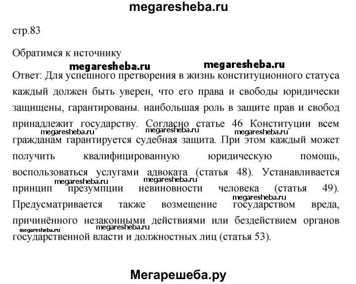 Подробный решебник (ГДЗ) по Обществознанию за 9 (девятый) класс - готовый ответ страница - 83. Авторы учебника: Боголюбов, Лазебникова, Лобанов. Издательство: Просвещение 2023-2024.