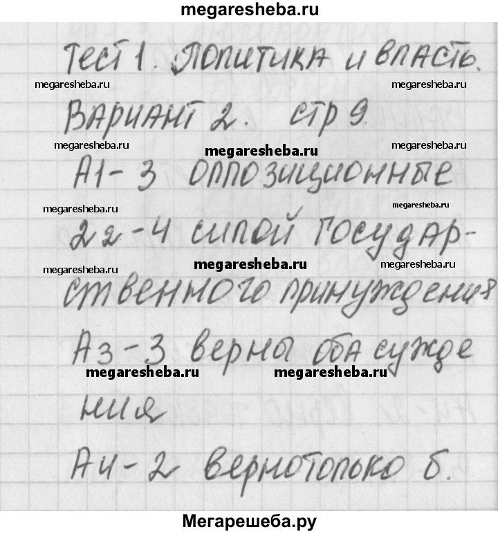 Подробный решебник (ГДЗ) по Обществознанию за 9 (девятый) класс контрольно-измерительные материалы - готовый ответ тест 1. вариант - 2. Авторы учебника: Поздеев. Издательство: ВАКО 2018.