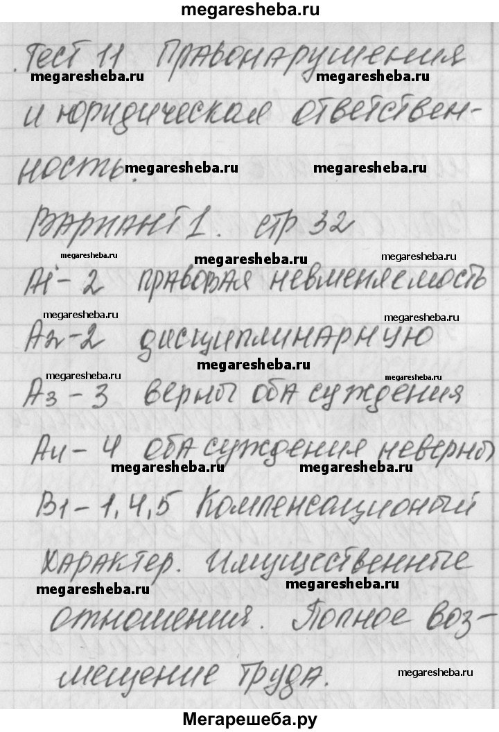 Подробный решебник (ГДЗ) по Обществознанию за 9 (девятый) класс контрольно-измерительные материалы - готовый ответ тест 11. вариант - 1. Авторы учебника: Поздеев. Издательство: ВАКО 2018.