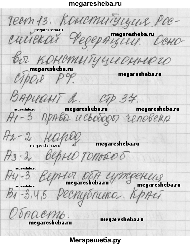 Подробный решебник (ГДЗ) по Обществознанию за 9 (девятый) класс контрольно-измерительные материалы - готовый ответ тест 13. вариант - 2. Авторы учебника: Поздеев. Издательство: ВАКО 2018.