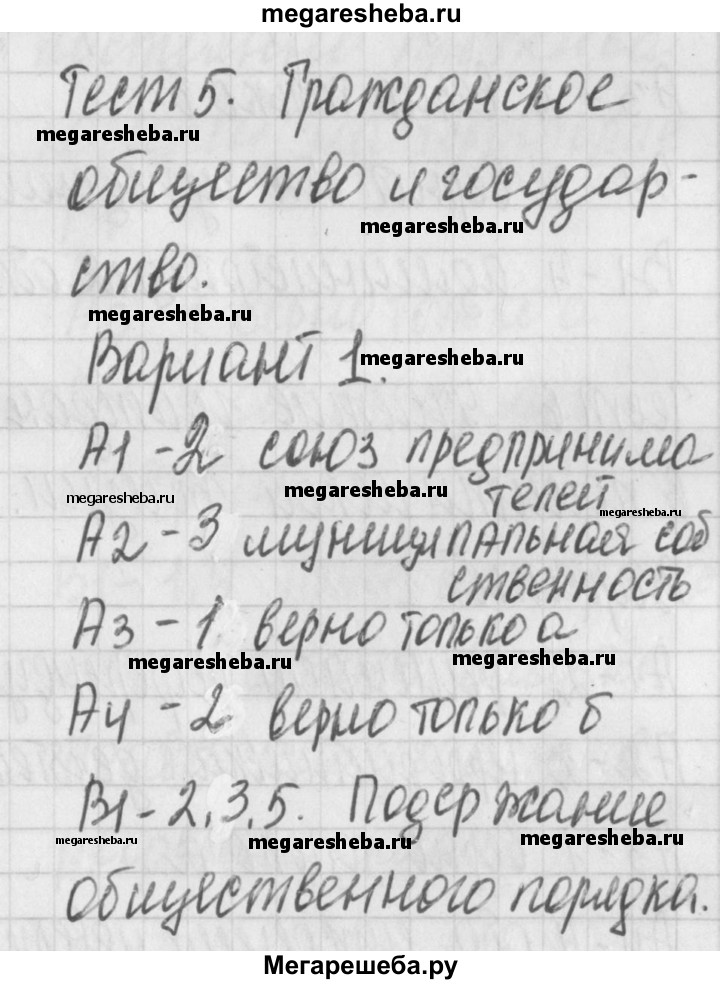 Подробный решебник (ГДЗ) по Обществознанию за 9 (девятый) класс контрольно-измерительные материалы - готовый ответ тест 5. вариант - 1. Авторы учебника: Поздеев. Издательство: ВАКО 2018.