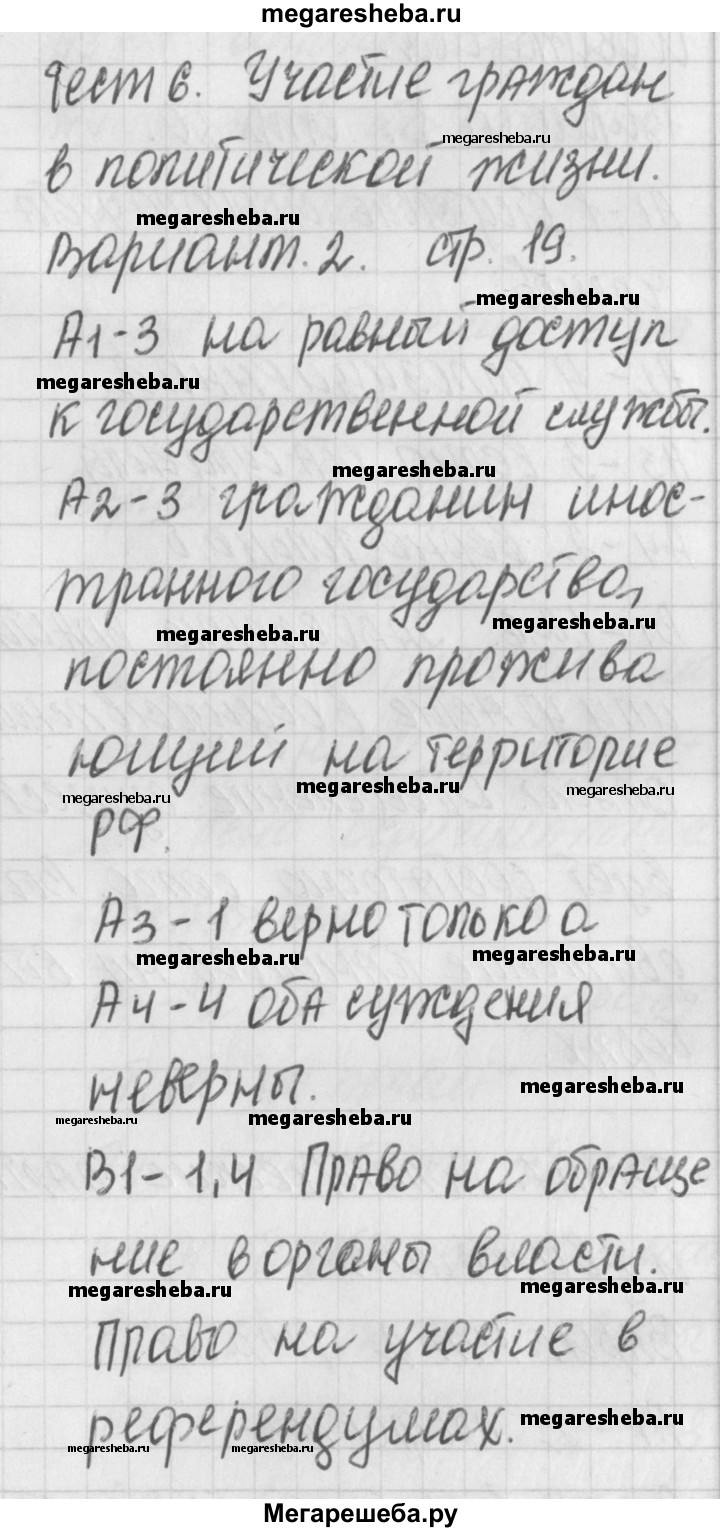Подробный решебник (ГДЗ) по Обществознанию за 9 (девятый) класс контрольно-измерительные материалы - готовый ответ тест 6. вариант - 2. Авторы учебника: Поздеев. Издательство: ВАКО 2018.