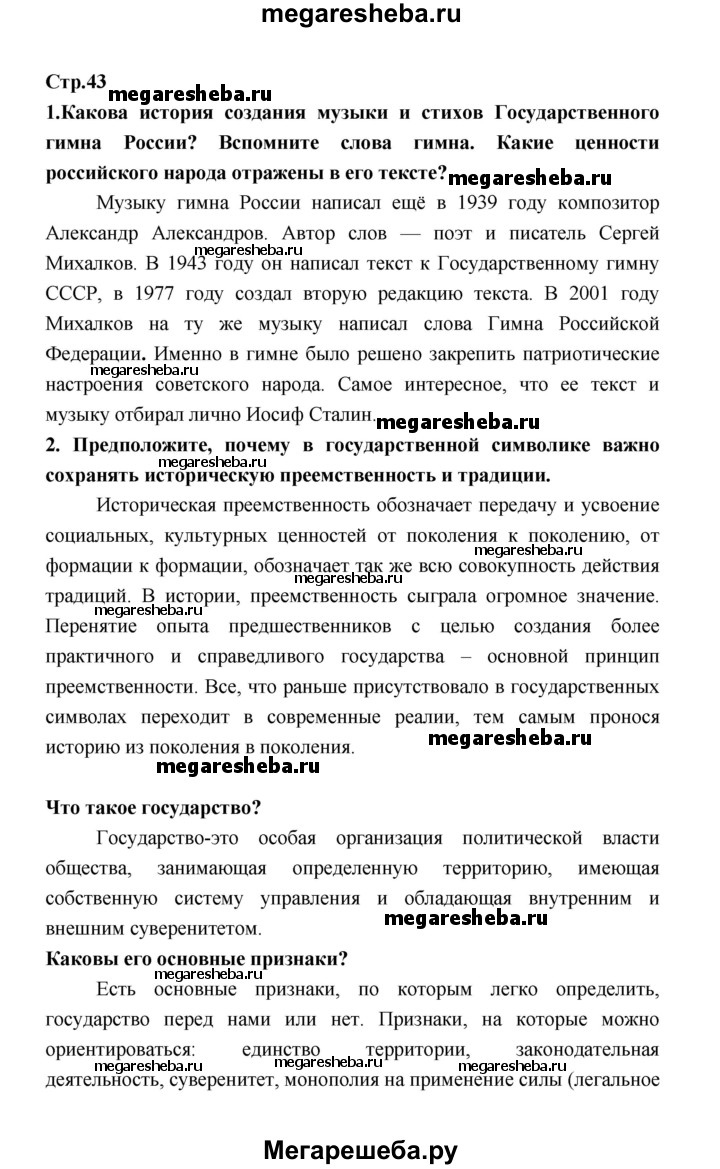 Подробный решебник (ГДЗ) по Обществознанию за 9 (девятый) класс - готовый ответ страница - 43. Авторы учебника: Котова, Лискова, Брызгалина, Вершинина, Евсикова, Ардельянова, Белев, Липень. Издательство: Просвещение 2021.