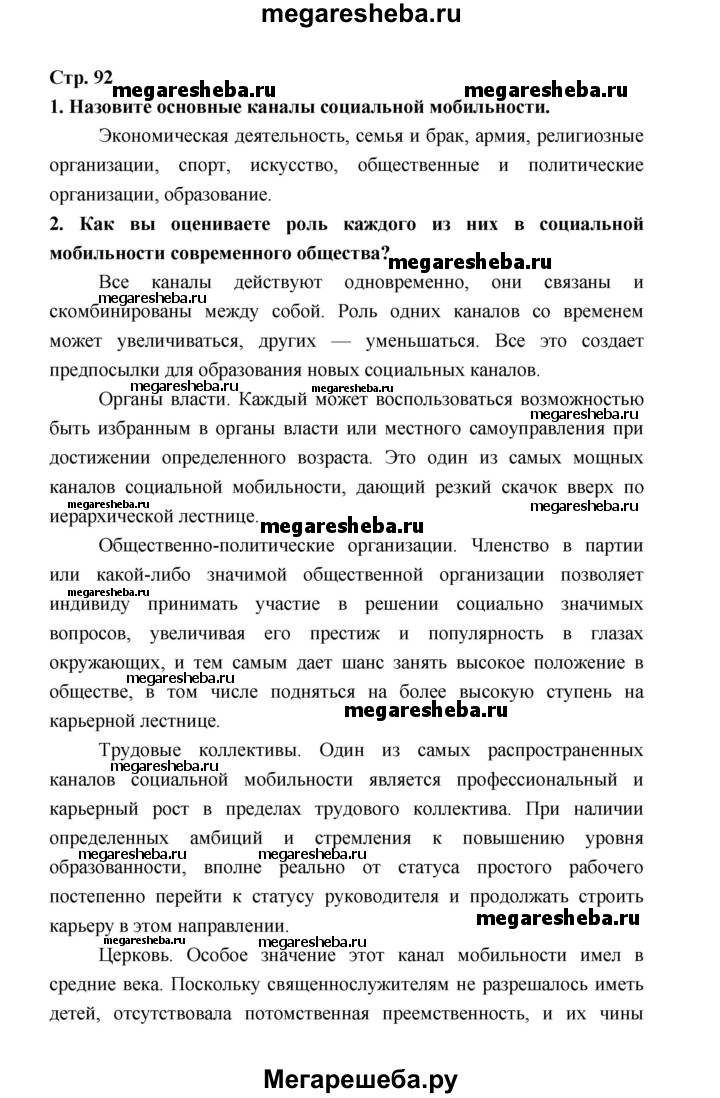 ГДЗ по обществознанию 9 класс Котова страница - 92
