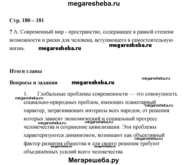 Подробный решебник (ГДЗ) по Обществознанию за 9 (девятый) класс - готовый ответ страница - 180. Авторы учебника: Кравченко, Певцова, Агафонов. Издательство: Просвещение 2021.