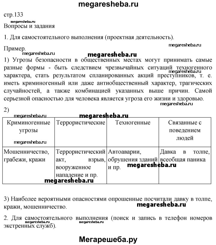 Подробный решебник (ГДЗ) по ОБЖ за 8‐9 (восьмой‐девятый) класс - готовый ответ часть 1. страница - 133. Авторы учебника: Рудаков, Шойгу, Приорова, Позднякова. Издательство: Просвещение 2023.
