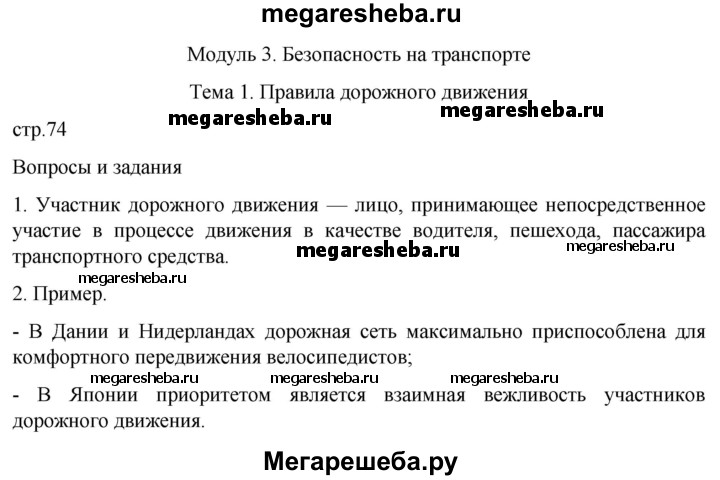 Подробный решебник (ГДЗ) по ОБЖ за 8‐9 (восьмой‐девятый) класс - готовый ответ часть 1. страница - 74. Авторы учебника: Рудаков, Шойгу, Приорова, Позднякова. Издательство: Просвещение 2023.