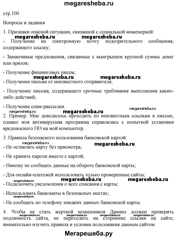 Подробный решебник (ГДЗ) по ОБЖ за 8‐9 (восьмой‐девятый) класс - готовый ответ часть 2. страница - 100. Авторы учебника: Рудаков, Шойгу, Приорова, Позднякова. Издательство: Просвещение 2023.