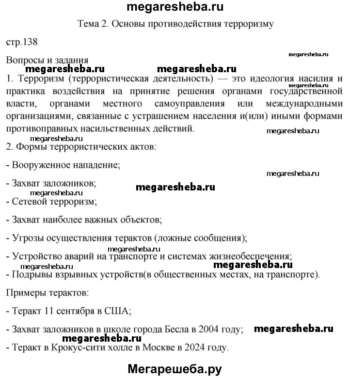 Подробный решебник (ГДЗ) по ОБЖ за 8‐9 (восьмой‐девятый) класс - готовый ответ часть 2. страница - 138. Авторы учебника: Рудаков, Шойгу, Приорова, Позднякова. Издательство: Просвещение 2023.
