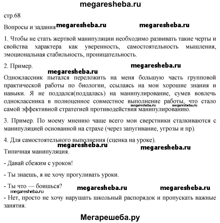 Подробный решебник (ГДЗ) по ОБЖ за 8‐9 (восьмой‐девятый) класс - готовый ответ часть 2. страница - 68. Авторы учебника: Рудаков, Шойгу, Приорова, Позднякова. Издательство: Просвещение 2023.