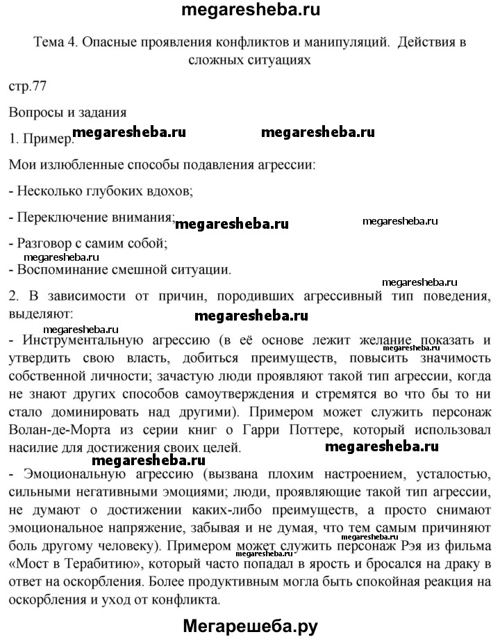 Подробный решебник (ГДЗ) по ОБЖ за 8‐9 (восьмой‐девятый) класс - готовый ответ часть 2. страница - 77. Авторы учебника: Рудаков, Шойгу, Приорова, Позднякова. Издательство: Просвещение 2023.