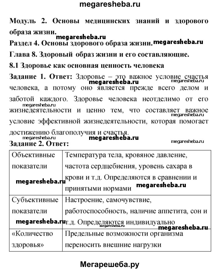 ГДЗ по обж 8 класс Смирнов рабочая тетрадь глава 8 (параграф) - 8.1
