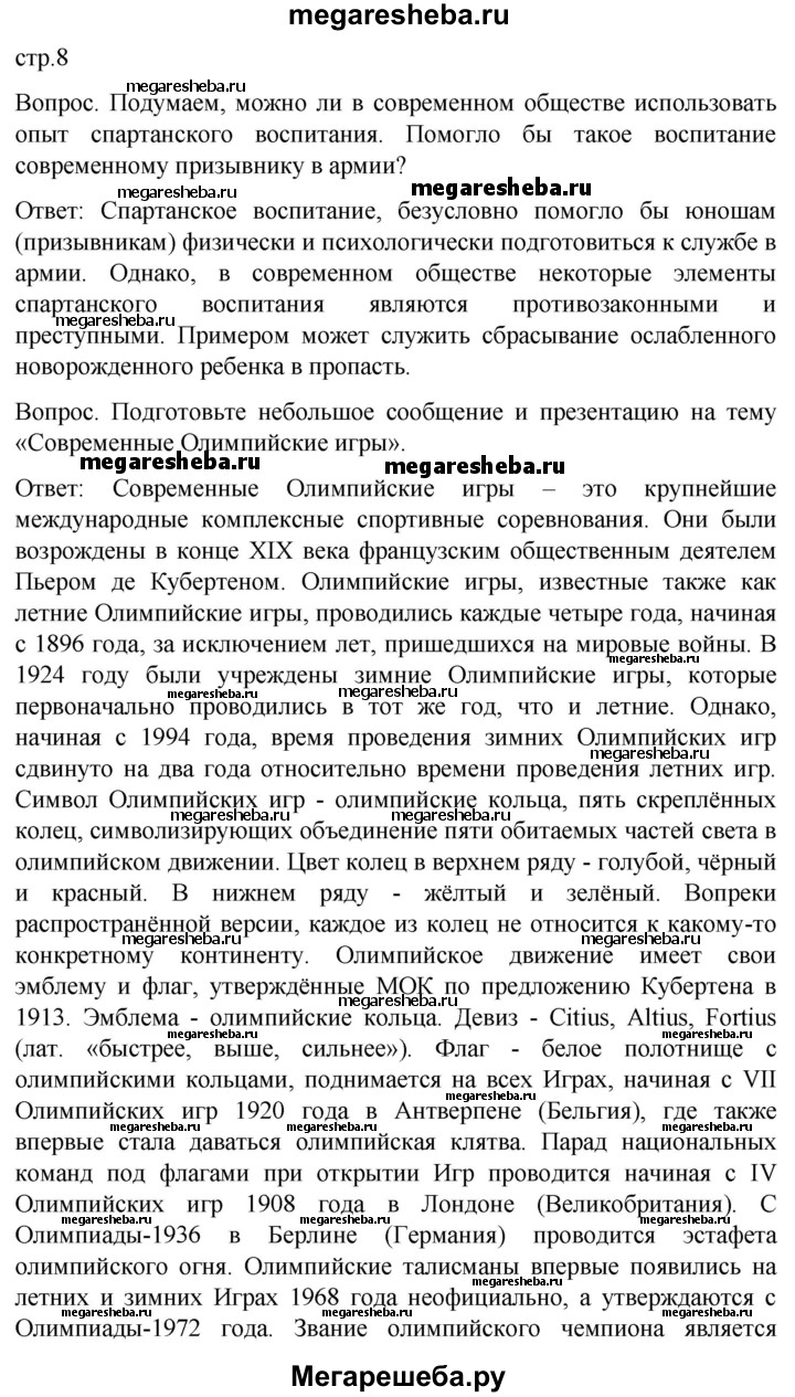 Подробный решебник (ГДЗ) по ОБЖ за 8‐9 (восьмой‐девятый) класс - готовый ответ страница - 8. Авторы учебника: Виноградова, Смирнов, Сидоренко, Таранин. Издательство: Просвещение 2021.