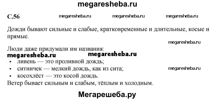 Подробный решебник (ГДЗ) по Окружающему миру за 1‐2 (первый‐второй) класс первый год обучения - готовый ответ часть 1. страница - 56. Авторы учебника: Плешаков. Издательство: Просвещение 2023.