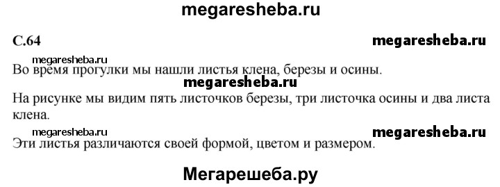 Подробный решебник (ГДЗ) по Окружающему миру за 1‐2 (первый‐второй) класс первый год обучения - готовый ответ часть 1. страница - 64. Авторы учебника: Плешаков. Издательство: Просвещение 2023.