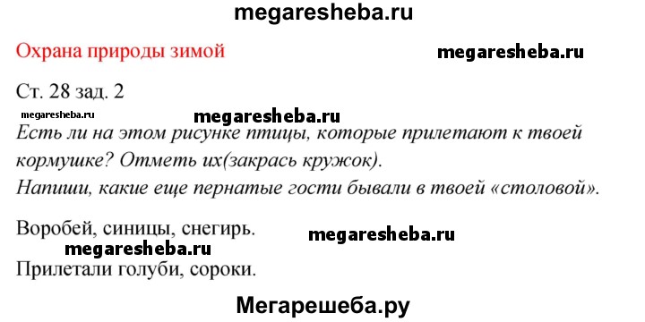 Подробный решебник (ГДЗ) по Окружающему миру за 2 (второй) класс рабочая тетрадь - готовый ответ часть 2. страница - 28. Авторы учебника: Плешаков, Новицкая. Издательство: Просвещение 2017-2023.