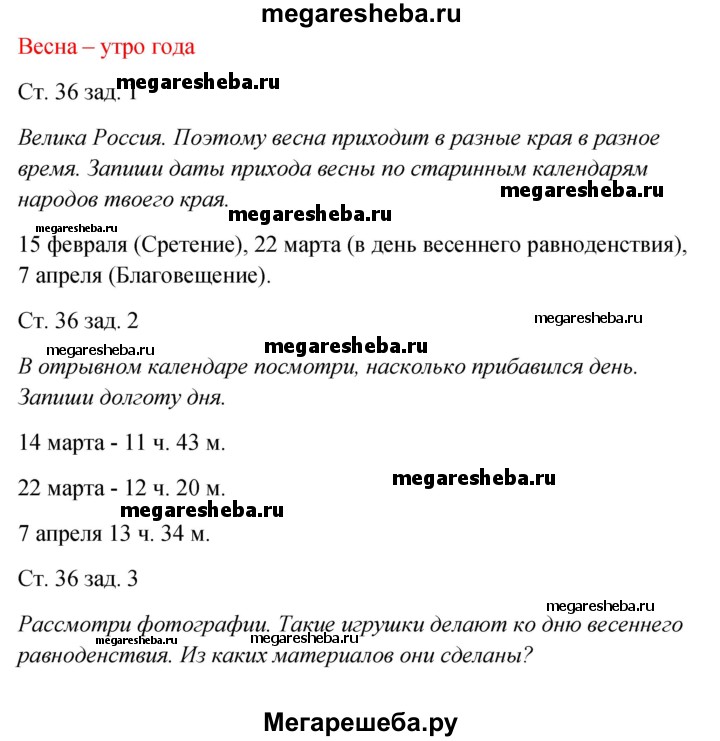 Подробный решебник (ГДЗ) по Окружающему миру за 2 (второй) класс рабочая тетрадь - готовый ответ часть 2. страница - 36. Авторы учебника: Плешаков, Новицкая. Издательство: Просвещение 2017-2023.