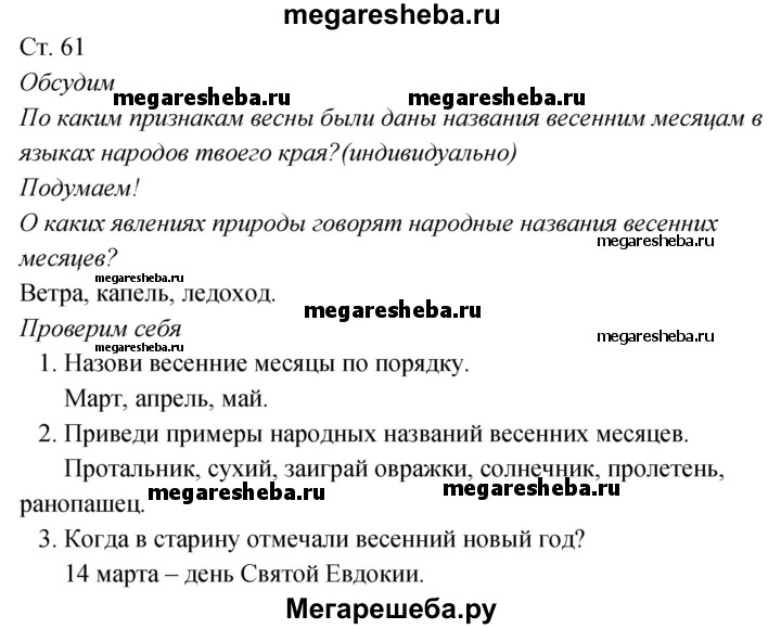Подробный решебник (ГДЗ) по Окружающему миру за 2 (второй) класс рабочая тетрадь - готовый ответ часть 2. страница - 61. Авторы учебника: Плешаков, Новицкая. Издательство: Просвещение 2017-2023.