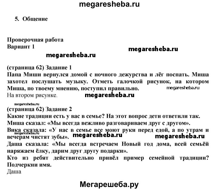 Подробный решебник (ГДЗ) по Окружающему миру за 2 (второй) класс проверочные работы - готовый ответ страница - 62. Авторы учебника: Плешаков, Плешаков. Издательство: Просвещение 2018.
