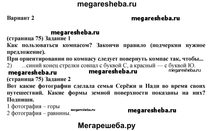 Подробный решебник (ГДЗ) по Окружающему миру за 2 (второй) класс проверочные работы - готовый ответ страница - 75. Авторы учебника: Плешаков, Плешаков. Издательство: Просвещение 2018.