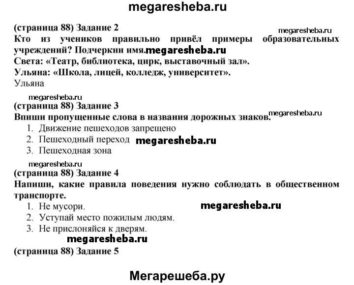 ГДЗ по окружающему миру 2 класс Плешаков проверочные работы страница - 88