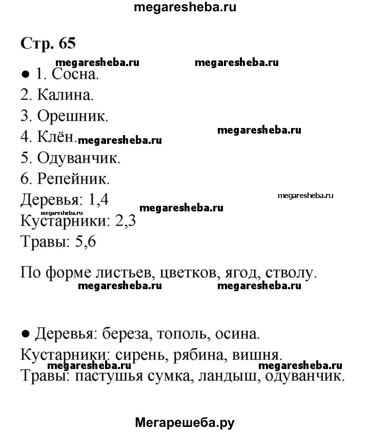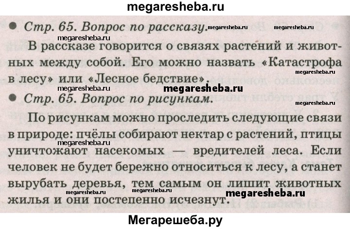 Подробный решебник (ГДЗ) по Окружающему миру за 2 (второй) класс - готовый ответ часть 1 (страница) - 65. Авторы учебника: Плешаков. Издательство: Просвещение 2017-2023.
