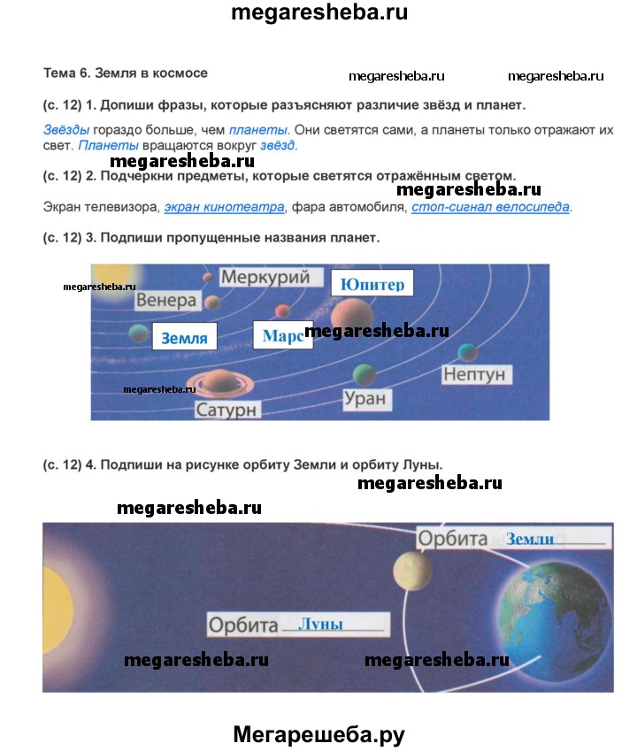 Подробный решебник (ГДЗ) по Окружающему миру за 2 (второй) класс рабочая тетрадь - готовый ответ страница номер - 12–13. Авторы учебника: Вахрушев, Бурский, Раутиан. Издательство: Баласс 2016.
