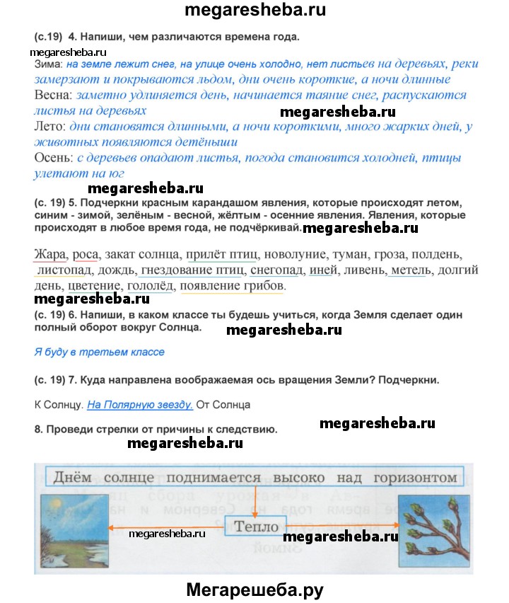 Подробный решебник (ГДЗ) по Окружающему миру за 2 (второй) класс рабочая тетрадь - готовый ответ страница номер - 18–19. Авторы учебника: Вахрушев, Бурский, Раутиан. Издательство: Баласс 2016.