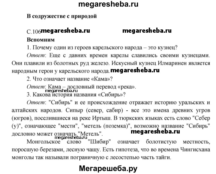 Подробный решебник (ГДЗ) по Окружающему миру за 4 (четвертый) класс - готовый ответ часть 1. страница - 106. Авторы учебника: Плешаков, Новицкая. Издательство: Просвещение 2016-2025.