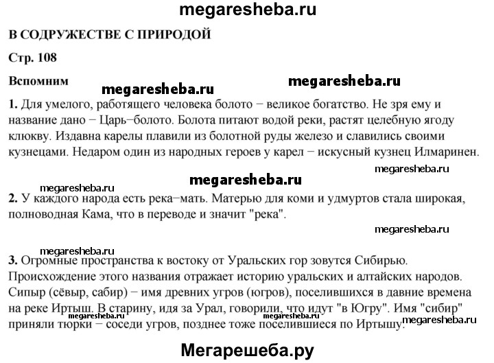 Подробный решебник (ГДЗ) по Окружающему миру за 4 (четвертый) класс - готовый ответ часть 1. страница - 108. Авторы учебника: Плешаков, Новицкая. Издательство: Просвещение 2016-2025.