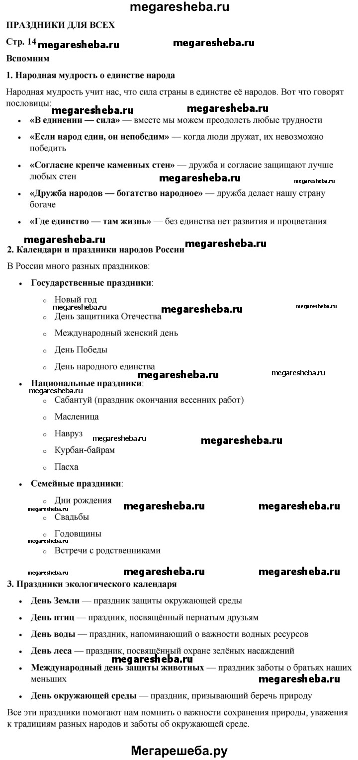 ГДЗ по окружающему миру 4 класс Плешаков часть 1. страница - 14