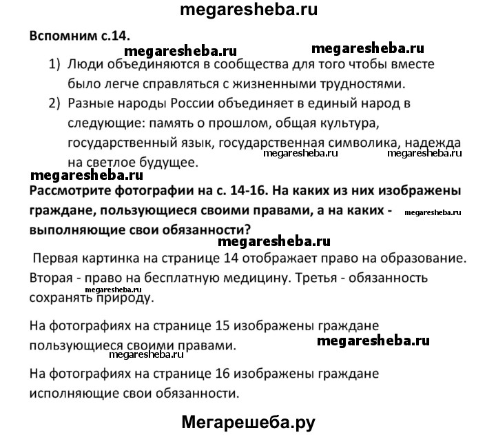 Подробный решебник (ГДЗ) по Окружающему миру за 4 (четвертый) класс - готовый ответ часть 1. страница - 14. Авторы учебника: Плешаков, Новицкая. Издательство: Просвещение 2016-2025.
