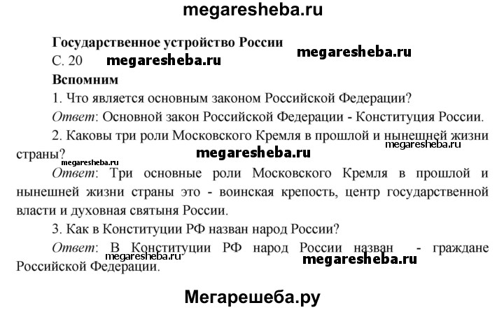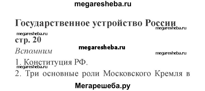 Подробный решебник (ГДЗ) по Окружающему миру за 4 (четвертый) класс - готовый ответ часть 1. страница - 20. Авторы учебника: Плешаков, Новицкая. Издательство: Просвещение 2016-2025.