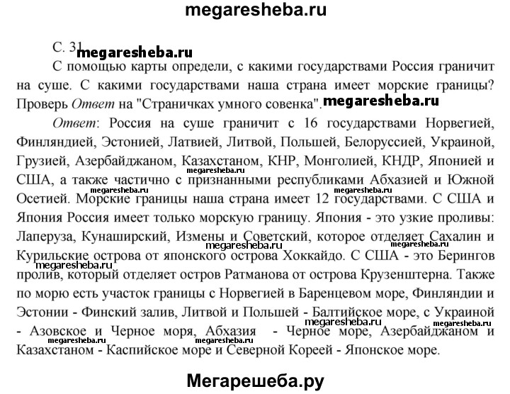 Подробный решебник (ГДЗ) по Окружающему миру за 4 (четвертый) класс - готовый ответ часть 1. страница - 31. Авторы учебника: Плешаков, Новицкая. Издательство: Просвещение 2016-2025.