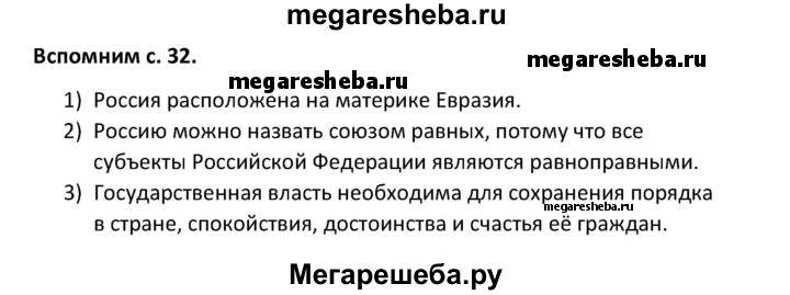 Подробный решебник (ГДЗ) по Окружающему миру за 4 (четвертый) класс - готовый ответ часть 1. страница - 32. Авторы учебника: Плешаков, Новицкая. Издательство: Просвещение 2016-2025.