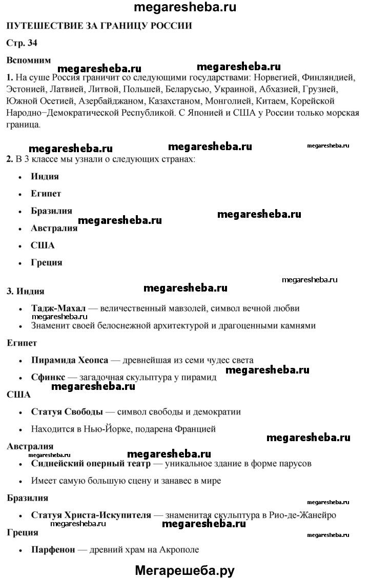 Подробный решебник (ГДЗ) по Окружающему миру за 4 (четвертый) класс - готовый ответ часть 1. страница - 34. Авторы учебника: Плешаков, Новицкая. Издательство: Просвещение 2016-2025.