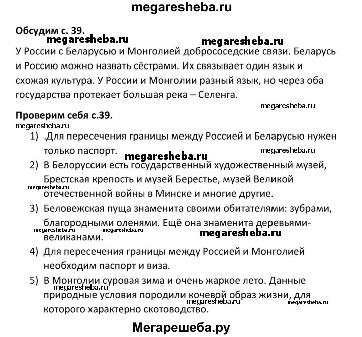 Подробный решебник (ГДЗ) по Окружающему миру за 4 (четвертый) класс - готовый ответ часть 1. страница - 39. Авторы учебника: Плешаков, Новицкая. Издательство: Просвещение 2016-2025.