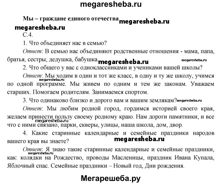 Подробный решебник (ГДЗ) по Окружающему миру за 4 (четвертый) класс - готовый ответ часть 1. страница - 4. Авторы учебника: Плешаков, Новицкая. Издательство: Просвещение 2016-2025.